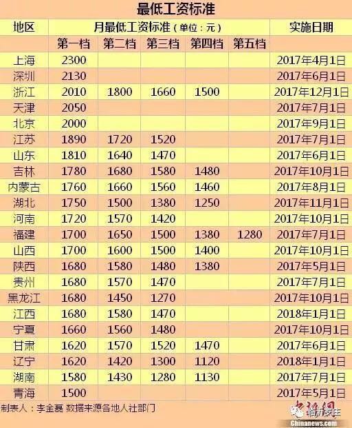 今年以来,已有22个地区宣布提高最低工资标准。其中,上海、浙江等5省市月最低工资标准不低于2000元。