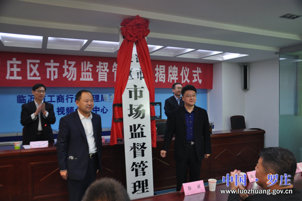 仪式上,宣读了《罗庄区人民政府关于整合组建罗庄区市场监督管理局的通知》,葛龙江和庄少春共同为罗庄区市场监督管理局揭牌。